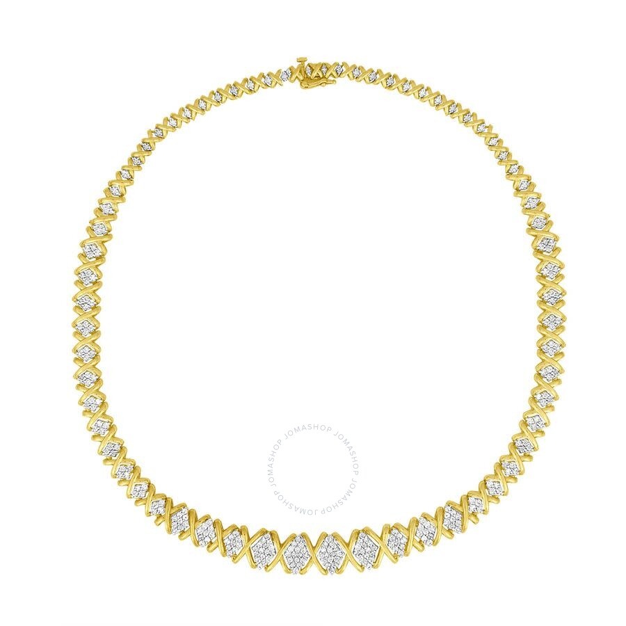 This gorgeous riviera statement necklace is created in the finest 10k yellow gold. Boasting a glamorous appearance, this beautiful piece is embellished with yellow gold "X" links and clusters of stunning round-cut diamonds in pave settings. 4 ct tdw of natural diamonds sparkle from this necklace, and is the perfect extravagance you've been looking for. GENERAL Stone Shape: Round Color: Yellow Collection Name: Statement Necklace INFORMATION Brand: Haus Of Brilliance Series: Statement Necklace Gender: Womens Model: 017287NYDM DETAILS Necklaces: Statement Material : Yellow Gold Metal Stamp: 10K Metal Weight: 22.86 Stone Type: Diamond Stone Weight: 0.5 Stone Color: H-I Stone Cut: Round Stone Clarity: I2-I3 Stone Origin: Natural Total Stones: 1 ADDITIONAL INFO Jomashop Sku: Y-103697 Department: Jewelry Category: Necklaces Choose a Size: 18 Inches