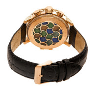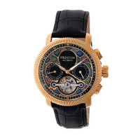 Rose gold-tone stainless steel case with a black (croco-embossed) leather strap. Fixed rose gold-tone bezel. Vitreous enamel (semi-skeleton) dial with rose gold-tone hands. Minute markers around the outer rim. Dial Type: Analog. Luminescent hands. Two multi-function sub-dials displaying: day of the week and date. Automatic movement. Scratch resistant sapphire-coated mineral crystal. Pull / push crown. Hinged case back cover of vitreous enamel. Round case shape. Case size: 44 mm. Case thickness: 17 mm. Band width: 22 mm. Tang clasp. Water resistant at 50 meters / 165 feet. Functions: date, day, hour, minute, second. Additional Info: average gain/loss rate: +/- 40 seconds per day. Aura Series. Casual watch style. Heritor Aura Vitreous Enamel Semi-Skeleton Dial Men's Watch HR3503. INFORMATION Brand: Heritor Series: Aura Collection Name: Aura Gender: Mens Model: HR3503 Movement: Automatic CASE Case Size: 44 mm Case Thickness: 17 mm Case Material: Stainless Steel Case Shape: Round Case Back: Hinged Caseback Cover of Vitreous Enamel BAND Band Material: (Croco-Embossed) Leather Band Type: Strap Band Color: Black Band Width: 22 mm Clasp: Tang DIAL Dial Color: Vitreous Enamel (Semi-Skeleton) Type: Analog Crystal: Sapphire-Coated Mineral Hands: Rose Gold-tone Dial Markers: Arabic Numeral Second Markers: Minute Markers around the outer rim Sub Dials: Two - Day of the Week and Date Luminiscence: Hands Bezel: Fixed Bezel Color: Rose Gold-tone Bezel Material: Stainless Steel Crown: Pull / Push FEATURES Water Resistance: 50 meters / 165 feet Calendar: Day/Date Display Functions: Date, Day, Hour, Minute, Second Watch Features: Stainless Steel, Leather, Gold, Analog ADDITIONAL INFO Watch Style: Casual Warranty: With Manufacturers Guarantee UPC Code: 847864139015 Additional Info: Average Gain/Loss Rate: +/- 40 Seconds per Day Jomashop Sku: HRT-HR3503 Department: Watches Category: Watches