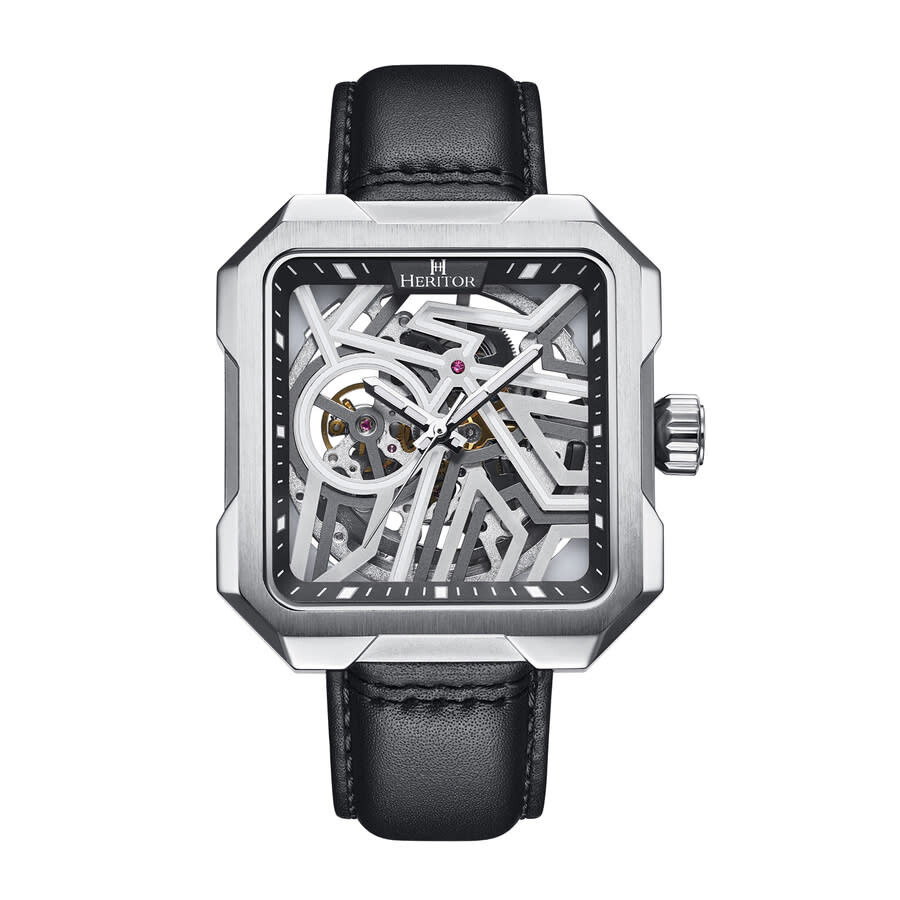 316L Surgical-Quality Stainless Steel Case Jeweled Automatic Movement Jewel Bearings: 22 Jewels 36-Hour Power Reserve Beats per Hour (BPH): 21600/Hour Sapphire-Coated Mineral Crystal Skeleton Dial with Luminous Features Observation Caseback to view Movement Genuine Leather Strap Logo-Engraved Stainless Steel Clasp Luminous Hands Luminous Markers 43mm Case Width 10 ATM Water Resistance GENERAL Box Type: Original Box CASE Case Diameter: 47 mm Case Thickness: 12 mm Case Material: Stainless Steel Case Shape: Rectangle Case Back: Transparent See Through BAND Band Material: Leather Band Type: Strap Band Color: Black Band Length: 8.5 inches Band Width: 22 mm Clasp: Buckle DIAL Dial Color: Silver-tone Type: Analog Crystal: Scratch Resistant Mineral Hands: Silver-tone Dial Markers: Arabic Numeral & Index Second Markers: Minute Markers around the outer rim Luminiscence: Hands Bezel: Fixed Bezel Color: Silver-tone Bezel Material: Stainless Steel Crown: Pull / Push INFORMATION Brand: Heritor Series: Campbell Collection Name: Campbell Gender: Mens Model: HERHS3301 Watch Label: Japan Movt Movement: Automatic FEATURES Water Resistance: 100 meters / 330 feet Functions: Hour, Minute, Second Watch Features: Analog, Leather, Stainless Steel ADDITIONAL INFO Watch Style: Fashion Warranty: With Manufacturers Guarantee UPC Code: 840148810457 Jomashop Sku: Y-A4APY Department: Watches Category: Watches