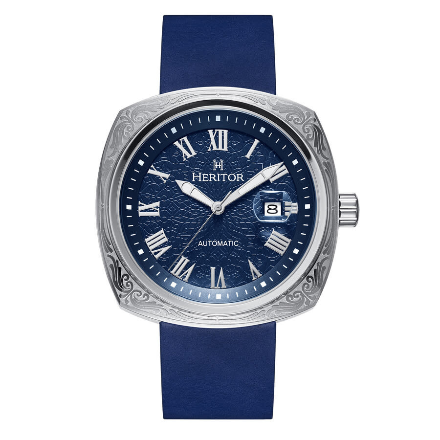 Engraved 316L Surgical-Quality Stainless Steel Case Miyota 8215 Automatic Movement Jewel Bearings: 21 Jewels 42-Hour Power Reserve Beats per Hour (BPH): 21600/Hour Sapphire-Coated Mineral Crystal Engraved Pattern Dial Observation Caseback to view Movement Logo-Engraved Crown Genuine Leather Strap Logo-Engraved Stainless Steel Clasp Luminous Hands Magnified Date Display 45mm Case Diameter 5 ATM Water Resistance GENERAL Box Type: Original Box CASE Case Diameter: 48 mm Case Thickness: 12 mm Case Material: Stainless Steel Case Shape: Cushion BAND Band Material: Leather Band Type: Strap Band Color: Blue Band Length: 8.75 inches Band Width: 22 mm Clasp: Buckle DIAL Dial Color: Blue Type: Analog Crystal: Scratch Resistant Mineral Hands: Silver-tone Dial Markers: Arabic Numeral & Index Second Markers: Minute Markers around the outer rim Luminiscence: Hands Bezel: Fixed Bezel Color: Silver-tone Bezel Material: Stainless Steel Crown: Pull / Push INFORMATION Brand: Heritor Series: Davenport Collection Name: Davenport Gender: Mens Model: HERHS3202 Watch Label: Japan Movt Movement: Automatic FEATURES Water Resistance: 50 meters / 165 feet Calendar: Date display at the 3 o'clock position Functions: Date, Hour, Minute, Second Watch Features: Analog, Leather, Stainless Steel ADDITIONAL INFO Watch Style: Fashion Warranty: With Manufacturers Guarantee UPC Code: 840148810402 Jomashop Sku: Y-A4APJ Department: Watches Category: Watches