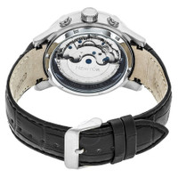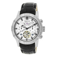 Silver-tone stainless steel case with a black (croco-embossed) leather strap. Fixed silver-tone stainless steel bezel. Silver (semi-skeleton) dial with luminous black hands and index hour markers. Minute markers around the outer rim. Dial Type: Analog. Luminescent hands and markers. Two sub-dials displaying: day of the week and date. Automatic movement with a 42-hour power reserve. Scratch resistant sapphire-coated mineral crystal. Pull / push crown. Transparent case back. Round case shape. Case size: 44 mm. Case thickness: 15 mm. Band width: 22 mm. Tang clasp. Water resistant at 50 meters / 165 feet. Functions: date, day, hour, minute, second. Additional Info: average gain/loss rate: +/- 45 seconds per day. Hannibal Series. Casual watch style. Heritor Hannibal Silver Semi-Skeleton Dial Black Leather Men's Watch HR4101. GENERAL Box Type: Original Box CASE Case Size: 44 Case Thickness: 15 mm Case Color: Silver-Tone Case Material: Stainless Steel Case Shape: Round Case Back: Transparent BAND Band Material: (Croco-Embossed) Leather Band Type: Strap Band Color: Black Band Width: 22 mm Clasp: Tang DIAL Dial Color: Silver (Semi-Skeleton) Type: Analog Crystal: Sapphire-Coated Mineral Hands: Luminous Black Dial Markers: Index Second Markers: Minute Markers around the outer rim Sub Dials: Two - Day of the Week and Date Luminiscence: Hands and Markers Bezel: Fixed Bezel Color: Silver-tone Bezel Material: Stainless Steel Crown: Pull / Push INFORMATION Brand: Heritor Series: Hannibal Collection Name: Hannibal Gender: Mens Model: HR4101 Movement: Automatic Power Reserve: 42 hours FEATURES Water Resistance: 50 meters / 165 feet Calendar: Day/Date Display Functions: Date, Day, Hour, Minute, Second Watch Features: Analog, Leather, Stainless Steel ADDITIONAL INFO Watch Style: Casual Warranty: With Manufacturers Guarantee UPC Code: 847864144736 Additional Info: Average Gain/Loss Rate: +/- 45 Seconds per Day Jomashop Sku: HRT-HR4101 Department: Watches Category: Watches
