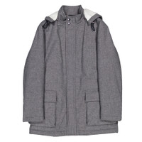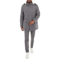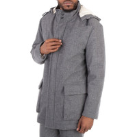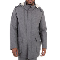 Hugo Boss Men's Outerwear. Fashion category: Coats & Jackets. SKU: 50528649-030. Color: Medium Grey. Hugo Boss Detachable Hood Long Sleeve Coat. This coat features a water-repellent design crafted from brushed stretch flannel, with a drawstring detachable hood, snap button closure, a stand collar, long sleeves, fully lined interior, and flap-over pockets. 39% Wool, 33% Polyester, 14% Viscose, 13% Polyamide, 1% Elastane. GENERAL Brand Type: Designer Color: Medium Grey INFORMATION Brand: Hugo Boss Gender: Mens Model: 50528649-030 DETAILS Category: Outerwear Apparel Type: Coats & Jackets Material: Polyamide, Polyester, Viscose, Wool ADDITIONAL INFO Jomashop Sku: -50528649030N Department: Clothing
