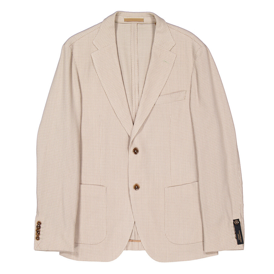 Hugo Boss Men's Outerwear. Fashion category: Blazers. SKU: 50520328-260. Color: Medium Beige. Hugo Boss Miniature Patterned Slim-Fit Blazer. This slim-fit blazer jacket is crafted from a stretchy silk-infused blend, featuring long sleeves, a front button fastening, one chest pocket, and two front patch pockets, all adorned with miniature motifs. 85% wool, 9% nylon, 4% mulberry silk, 2% spandex. Made in Italy. GENERAL Brand Type: Designer Color: Medium Beige INFORMATION Brand: Hugo Boss Gender: Mens Model: 50520328-260 DETAILS Category: Outerwear Apparel Type: Blazers Material: Nylon, Silk, Wool ADDITIONAL INFO Jomashop Sku: -50520328260N Department: Clothing