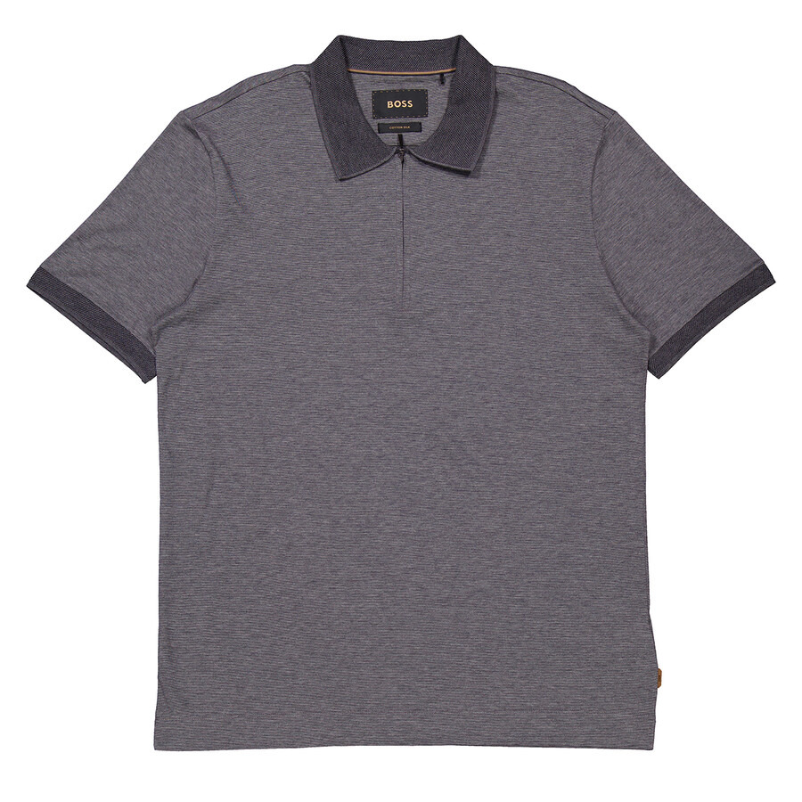 Hugo Boss Men's Tops. Fashion category: Polo Shirts. SKU: 50524184-030. Color: Medium Grey. Hugo Boss Short-Sleeved Zip-Placket Polo Shirt. This polo shirt features a zip placket and fine-line jacquard stripes, crafted from a cotton-silk blend for a soft, breathable feel. Designed in a regular fit, it includes a polo collar, short sleeves with ribbed cuffs, a nubuck logo label, and a standard length for a refined yet comfortable look. 50% Silk, 50% Cotton. GENERAL Brand Type: Designer Color: Medium Grey INFORMATION Brand: Hugo Boss Gender: Mens Model: 50524184-030 DETAILS Category: Tops Apparel Type: Polo Shirts ADDITIONAL INFO Jomashop Sku: -50524184030N Department: Clothing
