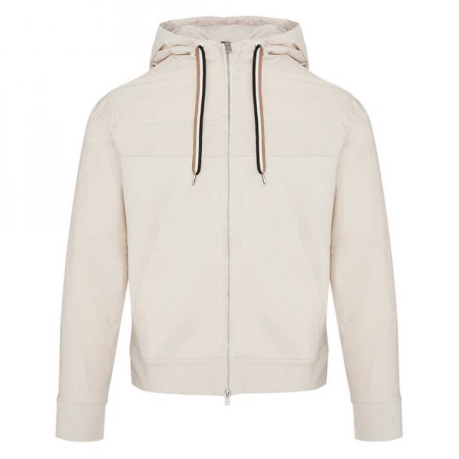 Hugo Boss Men's Tops. Fashion category: Hoodies & Sweatshirts. SKU: 50524342-131. Color: Open White. Hugo Boss Tonal Insert Zip-Up Hoodie. An oversized-fit hoodie with a tonal insert, two-way zip, signature-stripe cords, a hooded neckline, and long sleeves. 71% Cotton, 19% Polyester, 10% Elastane, Lining: 100% Polyester, Wadding: 100% Polyester, Insert: 100% Elastomultiester. GENERAL Brand Type: Designer Color: Open White INFORMATION Brand: Hugo Boss Gender: Mens Model: 50524342-131 DETAILS Category: Tops Apparel Type: Hoodies & Sweatshirts Material: Cotton, Elastane, Polyester ADDITIONAL INFO Jomashop Sku: -50524342131N Department: Clothing