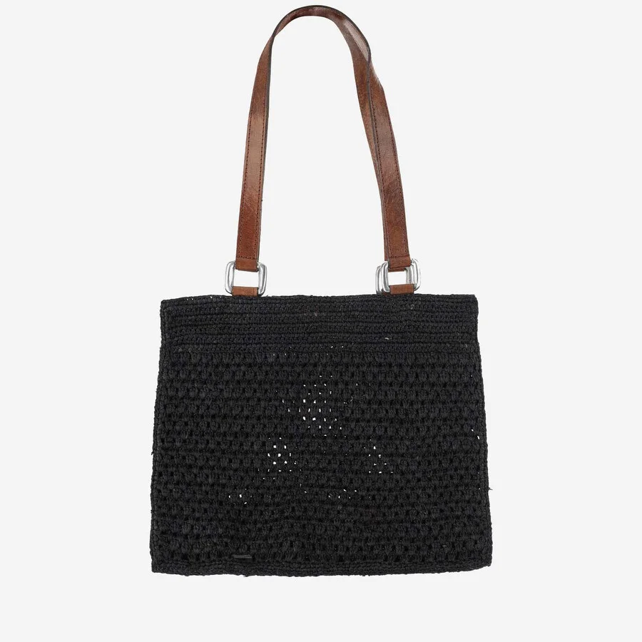Ibeliv Ladies Shoulder Bag. SKU: IRIBL. Color: Black. Ibeliv Irina Bag. Handmade bag made of straw with leather details On-top handles Open stitch work Black Made in Madagascar . Composition: 100% straw GENERAL Color: Black INFORMATION Brand: Ibeliv Gender: Womens Model: IRIBL ADDITIONAL INFO Jomashop Sku: Z-UKGYE Department: Bags Category: Shoulder Bag
