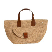 Ibeliv Ladies Tote. SKU: LAZA II-TEA. Barcode: 3760368823501. Color: Beige. Ibeliv Ladies Beige Laza II Raffia Tote Bag. The Laza II raffia tote bag features a woven raffia design with leather trim and a melange effect. It includes an internal logo patch, magnetic fastening, and two flat top handles. The bag is equipped with a front flap pocket, a spacious main compartment, two internal patch pockets, and two internal jetted pockets, all lined for added structure and durability. Raffia 100%, Calf Leather 100% GENERAL Color: Beige INFORMATION Brand: Ibeliv Gender: Womens Model: LAZA II-TEA DETAILS Material: Raffia, Calf Leather ADDITIONAL INFO UPC Code: 3760368823501 Jomashop Sku: Z-CB8QK Department: Bags Category: Tote Bags