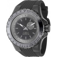 Gunmetal stainless steel case with a black silicone strap. Uni-directional rotating two-tone (grey and gunmetal) aluminum and stainless steel bezel. Black dial with gunmetal hands and index hour markers. Nautical markers around the outer rim. Dial Type: Analog. Luminescent hands and markers. Date display at the 2 o'clock position. One subdial displaying: date. Hattori Caliber VD72 quartz movement. Scratch resistant mineral crystal. Pull / push crown. Solid case back. Round case shape, case size: 50 mm, case thickness: 15.0 mm. Band width: 32.5 mm, band length: 8.75 inches. Buckle clasp. Water resistant at 100 meters / 330 feet. Functions: day, hour, minute. Aviator Series. Casual watch style. Watch label: Japan Movt. Invicta Aviator Quartz Black Dial Men's Watch 49728. GENERAL Box Type: Original Box CASE Case Diameter: 50 mm Case Thickness: 15.0 mm Case Material: Stainless Steel Case Shape: Round Case Back: Solid BAND Band Material: Silicone Band Type: Strap Band Color: Black Band Length: 8.75 inches Band Width: 32.5 mm Clasp: Buckle DIAL Dial Color: Black Type: Analog Crystal: Scratch Resistant Mineral Hands: Gunmetal Dial Markers: Index Second Markers: Nautical Markers around the outer rim Sub Dials: One - Date Luminiscence: Hands and Markers Bezel: Uni-directional Rotating Bezel Color: Two-tone (Grey and Gunmetal) Bezel Material: Aluminum and Stainless Steel Crown: Pull / Push INFORMATION Brand: Invicta Series: Aviator Collection Name: Aviator Gender: Mens Model: 49728 Watch Label: Japan Movt Movement: Quartz Engine: Hattori Caliber VD72 FEATURES Water Resistance: 100 meters / 330 feet Calendar: Date display at the 2 o'clock position Functions: Day, Hour, Minute Watch Features: Stainless Steel, Analog ADDITIONAL INFO Watch Style: Casual Warranty: With Manufacturer's Guarantee UPC Code: 886678671069 Jomashop Sku: IN49728 Department: Watches