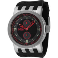 Silver-tone stainless steel case with a black silicone strap. Fixed silver-tone stainless steel bezel. Black dial with red hands and index-Arabic numeral hour markers. Compass markers around the outer rim. Dial Type: Analog. Luminescent hands and markers. Two sub-dials displaying: 60 second and 24 hour. Hattori Caliber VD77 quartz movement. Scratch resistant mineral crystal. Pull / push crown. Solid case back. Round case shape, case size: 46 mm, case thickness: 14.3 mm. Band width: 33.5 mm, band length: 8.75 inches. Buckle clasp. Water resistant at 100 meters / 330 feet. Functions: GMT, second time zone, hour, minute, small second. Dna Series. Casual watch style. Watch label: Japan Movt. Invicta DNA Quartz Black Dial Men's Watch 44224. INFORMATION Brand: Invicta Series: Dna Collection Name: DNA Gender: Mens Model: 44224 Watch Label: Japan Movt Movement: Quartz Engine: Hattori Caliber VD77 CASE Case Size: 46 mm Case Thickness: 14.3 mm Case Material: Stainless Steel Case Shape: Round Case Back: Solid BAND Band Material: Silicone Band Type: Strap Band Color: Black Band Length: 8.75 inches Band Width: 33.5 mm Clasp: Buckle DIAL Dial Color: Grey and Black Type: Analog Crystal: Scratch Resistant Mineral Hands: Red Dial Markers: Index-Arabic Numeral Second Markers: Compass Markers around the outer rim Sub Dials: Two - 60 second and 24 hour Luminiscence: Hands and Markers Bezel: Fixed Bezel Color: Silver-tone Bezel Material: Stainless Steel Crown: Pull / Push FEATURES Water Resistance: 100 meters / 330 feet Functions: GMT, Second Time Zone, Hour, Minute, Small Second Watch Features: Time Zone, Compass, Stainless Steel, GMT, Analog ADDITIONAL INFO Watch Style: Casual Warranty: With Manufacturer's Guarantee UPC Code: 886678587070 Jomashop Sku: IN44224 Department: Watches Category: Watches