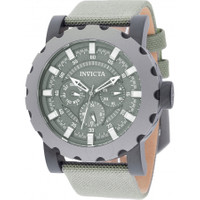 Titanium and black stainless steel case with a green nylon and rifle strap. Fixed titanium-tone stainless steel bezel. Olive green dial with olive green hands and index hour markers. Minute markers around the outer rim. Dial Type: Analog. Luminescent hands and markers. Date display at the 3 o'clock position. Three sub-dials displaying: date, day and 24 hour. TMI Caliber VH63 quartz movement. Scratch resistant mineral crystal. Pull / push crown. Solid case back. Round case shape, case size: 46.00 mm, case thickness: 15.10 mm. Band width: 24 mm, band length: 7.50 inches. Buckle clasp. Water resistant at 100 meters / 330 feet. Functions: date, day, second time zone, hour, minute, second. I-force Series. Casual watch style. Watch label: Japan Movt. Invicta I-Force Quartz Olive Green Dial Men's Watch 47586. CASE Case Size: 46 Case Thickness: 15.10 mm Case Material: Stainless Steel Case Shape: Round Case Back: Solid BAND Band Material: Nylon and Rifle Band Type: Strap Band Color: Green Band Length: 7.50 inches Band Width: 24 mm Clasp: Buckle DIAL Dial Color: Olive Green Type: Analog Crystal: Scratch Resistant Mineral Hands: Olive Green Dial Markers: Index Second Markers: Minute Markers around the outer rim Sub Dials: Three - Date, Day and 24 Hour Luminiscence: Hands and Markers Bezel: Fixed Bezel Color: Titanium-tone Bezel Material: Stainless Steel Crown: Pull / Push INFORMATION Brand: Invicta Series: I-Force Collection Name: I-Force Gender: Mens Model: 47586 Watch Label: Japan Movt Movement: Quartz Engine: TMI Caliber VH63 FEATURES Water Resistance: 100 meters / 330 feet Calendar: Date display at the 3 o'clock position Functions: Date, Day, Second Time Zone, Hour, Minute, Second Watch Features: Time Zone, Titanium, Stainless Steel, Analog ADDITIONAL INFO Watch Style: Casual Warranty: With Manufacturer's Guarantee UPC Code: 886678633449 Jomashop Sku: IN47586 Department: Watches