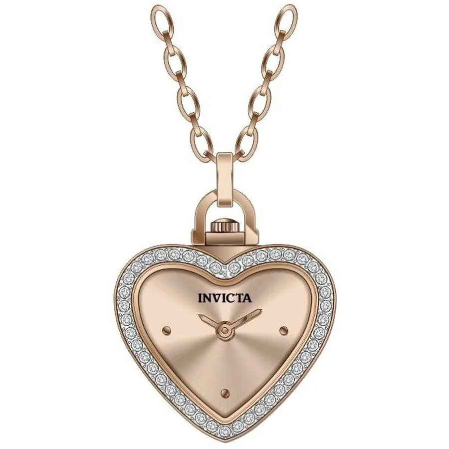 Rose gold-tone stainless steel case. Fixed rose gold-tone bezel with crystal set. Rose gold-tone dial with rose gold-tone hands. Dial Type: Analog. Hattori Caliber PC20S quartz movement. Scratch resistant mineral crystal. Pull / push crown. Solid case back. Unique case shape, case size: 27.5 mm, case thickness: 7.50 mm. Band width: 609.6 mm. None clasp. Water resistant at 30 meters / 100 feet. Functions: hour, minute. Mini Series. Casual watch style. Watch label: Japan Movt. Invicta Mini Angel Quartz Crystal Rose Gold Dial Ladies Watch 49939. GENERAL Box Type: Original Box CASE Case Thickness: 7.50 mm Case Material: Stainless Steel Case Shape: Unique Case Back: Solid BAND Band Width: 609.6 mm DIAL Dial Color: Rose Gold-tone Type: Analog Crystal: Scratch Resistant Mineral Hands: Rose Gold-tone Bezel: Fixed Bezel Color: Rose Gold-tone Bezel Material: Crystal Set Crown: Pull / Push INFORMATION Brand: Invicta Series: Mini Collection Name: Mini Gender: Womens Model: 49939 Watch Label: Japan Movt Movement: Quartz Engine: Hattori Caliber PC20S FEATURES Water Resistance: 30 meters / 100 feet Functions: Hour, Minute Watch Features: Stainless Steel, Gold, Analog ADDITIONAL INFO Watch Style: Casual Warranty: With Manufacturer's Guarantee UPC Code: 886678673896 Jomashop Sku: IN49939 Department: Watches