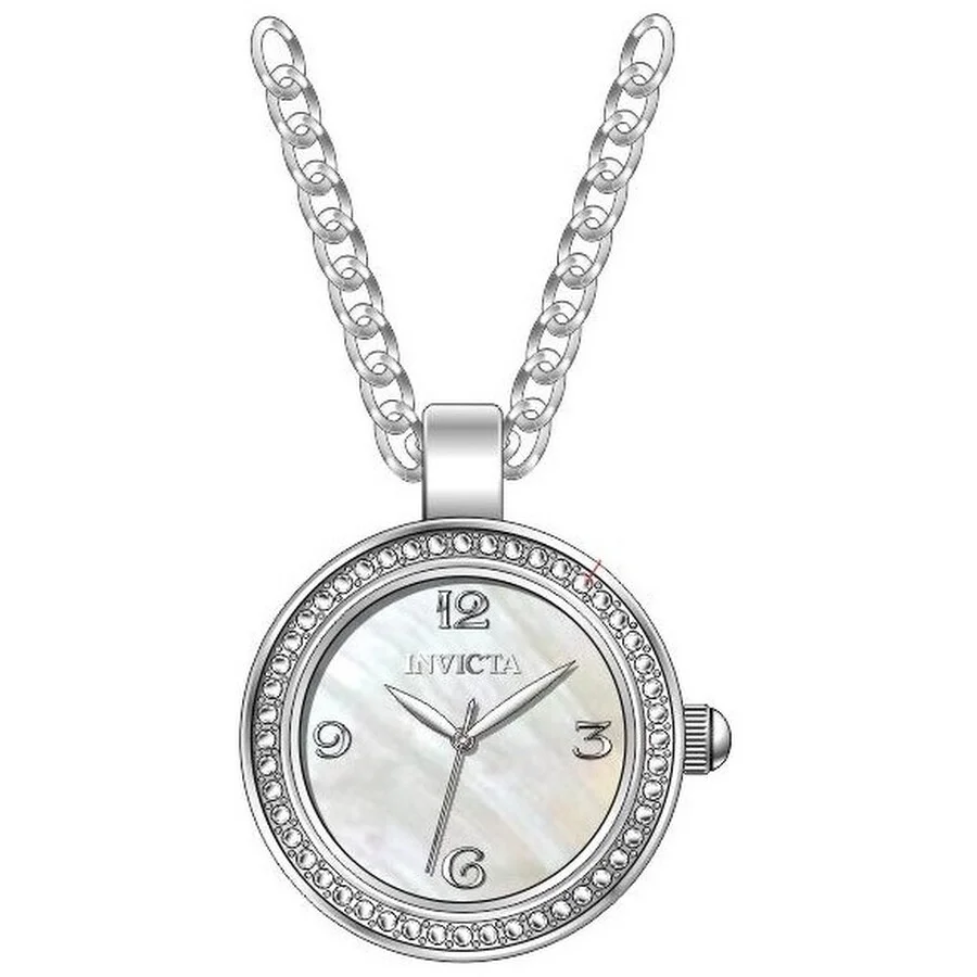 Silver-tone stainless steel case. Fixed silver-tone bezel with crystal set. White dial with silver-tone hands and Arabic numeral hour markers. Dial Type: Analog. TMI Caliber PC21J quartz movement. Scratch resistant mineral crystal. Pull / push crown. Solid case back. Round case shape, case size: 22.5 mm, case thickness: 7.80 mm. Band width: 609.6 mm. None clasp. Water resistant at 30 meters / 100 feet. Functions: hour, minute, second. Mini Series. Casual watch style. Watch label: Japan Movt. Invicta Mini Angel Quartz Crystal White Dial Ladies Watch 49931. GENERAL Box Type: Original Box CASE Case Thickness: 7.80 mm Case Material: Stainless Steel Case Shape: Round Case Back: Solid BAND Band Width: 609.6 mm DIAL Dial Color: White Type: Analog Crystal: Scratch Resistant Mineral Hands: Silver-tone Dial Markers: Arabic Numeral Bezel: Fixed Bezel Color: Silver-tone Bezel Material: Crystal Set Crown: Pull / Push INFORMATION Brand: Invicta Series: Mini Collection Name: Mini Gender: Womens Model: 49931 Watch Label: Japan Movt Movement: Quartz Engine: TMI Caliber PC21J FEATURES Water Resistance: 30 meters / 100 feet Functions: Hour, Minute, Second Watch Features: Stainless Steel, Analog ADDITIONAL INFO Watch Style: Casual Warranty: With Manufacturer's Guarantee UPC Code: 886678673810 Jomashop Sku: IN49931 Department: Watches