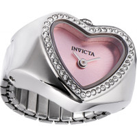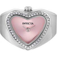 Silver-tone stainless steel case and bracelet. Fixed white crystal bezel. Pink dial with silver-tone hands. Dial Type: Analog. TMI Caliber VC00 quartz movement. Scratch resistant mineral crystal. Pull / push crown. Solid case back. Unique case shape, case size: 18.5 mm, case thickness: 6.80 mm. Band width: 7 mm, band length: 1.75 inches. None clasp. Water resistant at 30 meters / 100 feet. Functions: hour, minute. Mini Ring Watch Series. Dress watch style. Watch label: Japan Movt. Invicta Mini Ring Watch Angel Quartz Crystal Pink Dial Ladies Watch 49571. GENERAL Box Type: Original Box CASE Case Thickness: 6.80 mm Case Material: Stainless Steel Case Shape: Unique Case Back: Solid BAND Band Material: Stainless Steel Band Type: Bracelet Band Color: Silver-tone Band Length: 1.75 inches Band Width: 7 mm DIAL Dial Color: Pink Type: Analog Crystal: Scratch Resistant Mineral Hands: Silver-tone Bezel: Fixed Bezel Color: White Bezel Material: Crystal Crown: Pull / Push INFORMATION Brand: Invicta Series: Mini Ring Watch Collection Name: Mini Ring Watch Gender: Womens Model: 49571 Watch Label: Japan Movt Movement: Quartz Engine: TMI Caliber VC00 FEATURES Water Resistance: 30 meters / 100 feet Functions: Hour, Minute Watch Features: Stainless Steel, Analog ADDITIONAL INFO Watch Style: Dress Warranty: With Manufacturer's Guarantee UPC Code: 886678667994 Jomashop Sku: IN49571 Department: Watches