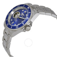 Stainless steel case with a stainless steel bracelet. Uni-directional rotating coin edge stainless steel bezel with a blue top ring. Blue (skeletal window) dial with luminous silver-tone Breguet-style shape hands and dot hour markers. Minute markers around the outer rim. Dial Type: Analog. Luminescent hands and markers. TMI caliber NH38A automatic movement, containing 24 Jewels, bitting at 21600 vph, and has a power reserve of approximately 41 hours. Scratch resistant mineral crystal. Screw down crown. Transparent case back. Round case shape. Case size: 40 mm. Case thickness: 14 mm. Band width: 20 mm. Band length: 8.25 inches. Fold over clasp with a safety release. Water resistant at 200 meters / 660 feet. Functions: hour, minute, second. Additional Info: in general, suitable for professional marine activity and serious surface water sports, but not diving. Pro Diver Series. Casual watch style. Watch label: Japan Movt. Invicta Pro Diver Automatic Blue Dial Stainless Steel Men's Watch 20434. GENERAL Box Type: Original Box CASE Case Diameter: 40 mm Case Thickness: 14 mm Case Material: Stainless Steel Case Shape: Round Case Back: Transparent BAND Band Material: Stainless Steel Band Type: Bracelet Band Color: Silver-tone Band Length: 8.25 inches Band Width: 20 mm Clasp: Fold Over with Safety Release DIAL Dial Color: Blue (Skeletal Window) Type: Analog Crystal: Scratch Resistant Mineral Hands: Luminous Silver-tone Breguet-style shape Dial Markers: Dot Second Markers: Minute Markers around the outer rim Luminiscence: Hands and Markers Bezel: Uni-directional Rotating Coin Edge Bezel Color: Blue Top Ring Bezel Material: Stainless Steel with a Blue Top Ring Crown: Screw Down INFORMATION Brand: Invicta Series: Pro Diver Collection Name: Pro Diver Gender: Mens Model: 20434 Watch Label: Japan Movt Movement: Automatic Engine: TMI Caliber NH38A Power Reserve: 41 hours FEATURES Water Resistance: 200 meters / 660 feet Functions: Hour, Minute, Second Watch Features: Analog, Stainless Steel ADDITIONAL INFO Watch Style: Casual Warranty: With Manufacturers Guarantee UPC Code: 886678252596 Additional Info: in General, Suitable for Professional Marine Activity and Serious Surface Water Sports, but not Diving Jomashop Sku: IN20434 Department: Watches Category: Watches