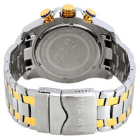 Stainless steel case with a two-tone (silver-tone and yellow gold-tone) stainless steel bracelet. Fixed yellow gold-tone bezel with a blue aluminum ring. Dark blue dial with luminous yellow gold-tone arrow-shaped hands and index hour markers. Minute markers around the outer rim. Dial Type: Analog. Luminescent hands and markers. Date display between the 4 and 5 o'clock positions. Chronograph - three sub-dials displaying: 60 second, 30 minute and 1/10th of a second. ISA caliber 6371D quartz movement. Scratch resistant flame fusion crystal. Pull / push crown. Solid case back. Round case shape. Case size: 50 mm. Case thickness: 14.5 mm. Band width: 26 mm. Tang clasp. Water resistant at 100 meters / 330 feet. Functions: chronograph, date, hour, minute, second. Pro Diver Series. Casual watch style. Invicta Pro Diver Chronograph Dark Blue Dial Men's Watch 26296. INFORMATION Brand: Invicta Series: Pro Diver Collection Name: Pro Diver Gender: Mens Model: 26296 Watch Label: Japan Movt Movement: Quartz Engine: ISA Caliber 6371D CASE Case Size: 50 mm Case Thickness: 14.5 mm Case Material: Stainless Steel Case Shape: Round Case Back: Solid BAND Band Material: Stainless Steel Band Type: Bracelet Band Color: Two-tone (Silver-tone and Yellow Gold-tone) Band Length: 7.75 inches Band Width: 26 mm Clasp: Tang DIAL Dial Color: Dark Blue Type: Analog Crystal: Flame Fusion Hands: Luminous Yellow Gold-tone Arrow-shaped Dial Markers: Index Second Markers: Minute Markers around the outer rim Sub Dials: Three - 60 Second, 30 Minute and 1/10th of a Second Luminiscence: Hands and Markers Bezel: Fixed Bezel Color: Yellow Gold-tone Bezel Material: Stainless Steel with a Blue Aluminum Ring Crown: Pull / Push FEATURES Water Resistance: 100 meters / 330 feet Calendar: Date display between the 4 and 5 o'clock positions Functions: Chronograph, Date, Hour, Minute, Second Watch Features: Chronograph, Stainless Steel, Gold, Analog ADDITIONAL INFO Watch Style: Casual Warranty: With Manufacturers Guarantee UPC Code: 886678316908 Jomashop Sku: IN26296 Department: Watches Category: Watches