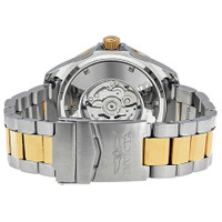 Stainless steel case with a two-tone (silver-tone and gold-tone) stainless steel bracelet. Uni-directional rotating gold-tone bezel with gold-tone (count-up elapsed time) ring. Silver dial with luminous gold-tone arrow-shaped hands and dot hour markers. Minute markers around the outer rim. Dial Type: Analog. Luminescent tritnite hands and markers. Date display at the 3 o'clock position. SII Caliber NH35A Automatic movement, containing 24 Jewels, bitting at 21600 vph, and has a power reserve of approximately 41 hours. Scratch resistant Flame Fusion crystal. Screw down crown. Skeleton case back. Round case shape. Case size: 47 mm. Case thickness: 16 mm. Band width: 22 mm, band length: 10 inches. Fold over clasp with a safety release. Water resistant at 300 meters / 1000 feet. Functions: date, hour, minute, second. Pro Diver Series. Dive watch style. Watch label: Japan Movt. Invicta Pro Diver Grand Diver Automatic Silver Dial Men's Watch 3050. GENERAL Color: Silver / Skeleton INFORMATION Brand: Invicta Series: Pro Diver Collection Name: Pro Diver Gender: Mens Model: 3050 Watch Label: Japan Movt Movement: Automatic Engine: SII Caliber NH35A Power Reserve: 41 hours CASE Case Size: 47 mm Case Thickness: 16 mm Case Material: Stainless Steel Case Shape: Round Case Back: Skeleton BAND Band Material: Stainless Steel Band Type: Bracelet Band Color: Two-tone (Silver-tone and Gold-tone) Band Length: 10 inches Band Width: 22 mm Clasp: Fold Over with Safety Release DIAL Dial Color: Silver Type: Analog Crystal: Flame Fusion Hands: Luminous Gold-tone Arrow-shaped Dial Markers: Dot Second Markers: Minute Markers around the outer rim Luminiscence: Tritnite Hands and Markers Bezel: Uni-directional Rotating Bezel Color: Gold-tone Bezel Material: Stainless Steel with Gold-tone (Count-Up Elapsed Time) Ring Crown: Screw Down FEATURES Water Resistance: 300 meters / 1000 feet Calendar: Date display at the 3 o'clock position Functions: Date, Hour, Minute, Second Watch Features: Stainless Steel, Gold, Analog ADDITIONAL INFO Watch Style: Dive Warranty: With Manufacturers Guarantee UPC Code: 843836030502 Jomashop Sku: IN3050 Department: Watches Category: Watches