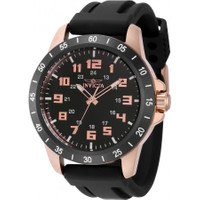 Rose gold-tone stainless steel case with a black silicone strap. Fixed two-tone (white and black) stainless steel bezel. Black dial with silver-tone hands and Arabic numeral hour markers. Minute markers around the outer rim. Dial Type: Analog. Luminescent hands and markers. Hattori Caliber PC21 quartz movement. Scratch resistant Flame Fusion crystal. Pull / push crown. Solid case back. Round case shape, case size: 45 mm, case thickness: 12.5 mm. Band width: 22 mm, band length: 8.25 inches. Buckle clasp. Water resistant at 100 meters / 330 feet. Functions: hour, minute, second. Pro Diver Series. Casual watch style. Watch label: Japan Movt. Invicta Pro Diver Quartz Black Dial Men's Watch 40000. GENERAL Box Type: Original Box CASE Case Thickness: 12.5 mm Case Material: Stainless Steel Case Shape: Round Case Back: Solid BAND Band Material: Silicone Band Type: Strap Band Color: Black Band Length: 8.25 inches Band Width: 22 mm Clasp: Buckle DIAL Dial Color: Black Type: Analog Crystal: Flame Fusion Hands: Silver-tone Dial Markers: Arabic Numeral Second Markers: Minute Markers around the outer rim Luminiscence: Hands and Markers Bezel: Fixed Bezel Color: Two-tone (White and Black) Bezel Material: Stainless Steel Crown: Pull / Push INFORMATION Brand: Invicta Series: Pro Diver Collection Name: Pro Diver Gender: Mens Model: 40000 Watch Label: Japan Movt Movement: Quartz Engine: Hattori Caliber PC21 FEATURES Water Resistance: 100 meters / 330 feet Functions: Hour, Minute, Second Watch Features: Analog, Gold, Stainless Steel ADDITIONAL INFO Watch Style: Casual Warranty: With Manufacturer's Guarantee UPC Code: 886678538997 Jomashop Sku: IN40000 Department: Watches