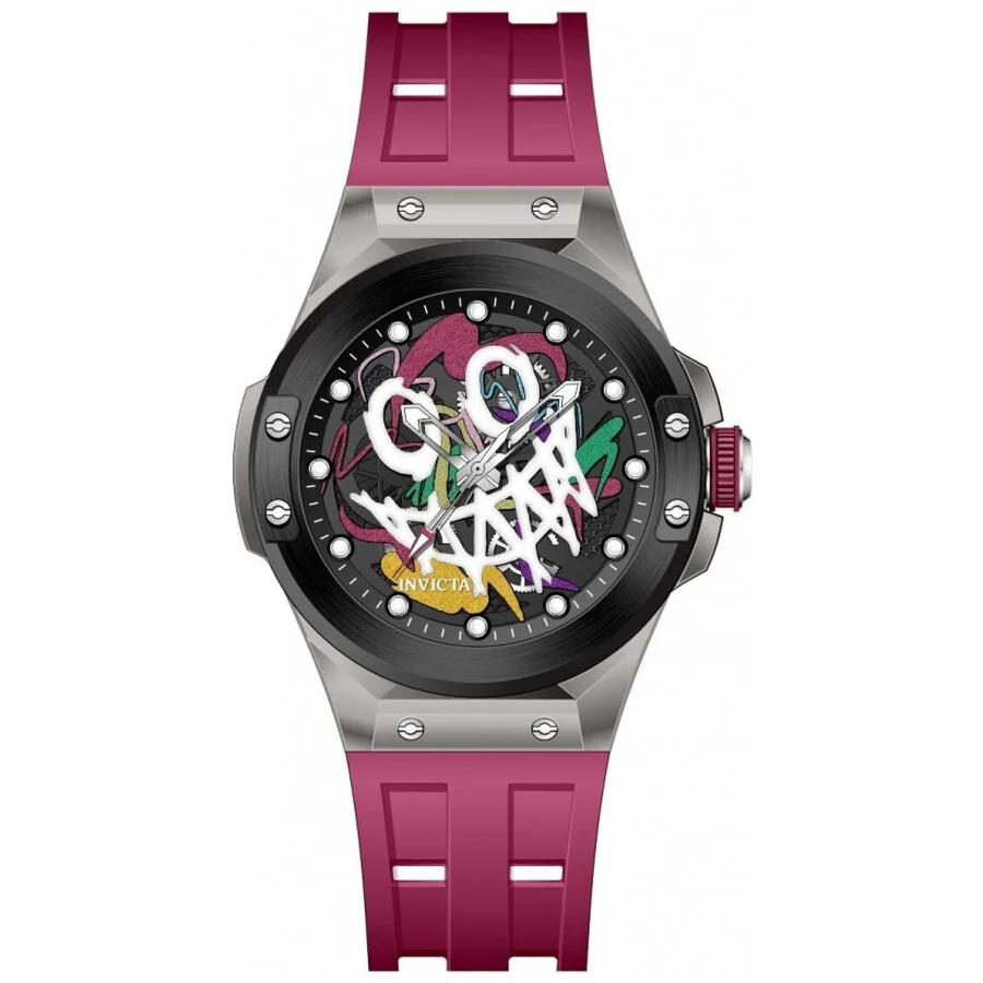 Transparent plastic case with a purple silicone strap. Fixed black stainless steel bezel. Iridescent and black dial with silver-tone hands and index hour markers. Minute markers around the outer rim. Dial Type: Analog. Luminescent hands and markers. Hattori Caliber PC21 quartz movement. Scratch resistant mineral crystal. Pull / push crown. Solid case back. Round case shape, case size: 45 mm, case thickness: 12.50 mm. Band width: 26 mm, band length: 8.75 inches. Buckle clasp. Water resistant at 50 meters / 165 feet. Functions: hour, minute, second. Sea Base Series. Casual watch style. Watch label: Japan Movt. Invicta Sea Base Iridescent and Black Dial Men's Watch 50007. GENERAL Box Type: Original Box CASE Case Thickness: 12.50 mm Case Material: Plastic Case Shape: Round Case Back: Solid BAND Band Material: Silicone Band Type: Strap Band Color: Purple Band Length: 8.75 inches Band Width: 26 mm Clasp: Buckle DIAL Dial Color: Iridescent and Black Type: Analog Crystal: Scratch Resistant Mineral Hands: Silver-tone Dial Markers: Index Second Markers: Minute Markers around the outer rim Luminiscence: Hands and Markers Bezel: Fixed Bezel Color: Black Bezel Material: Stainless Steel Crown: Pull / Push INFORMATION Brand: Invicta Series: Sea Base Collection Name: Sea Base Gender: Mens Model: 50007 Watch Label: Japan Movt Movement: Quartz Engine: Hattori Caliber PC21 FEATURES Water Resistance: 50 meters / 165 feet Functions: Hour, Minute, Second Watch Features: Analog, Plastic, Stainless Steel ADDITIONAL INFO Watch Style: Casual Warranty: With Manufacturer's Guarantee UPC Code: 886678678341 Jomashop Sku: IN50007 Department: Watches