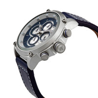 Silver-tone composite metal case with a blue leather strap. Fixed silver-tone composite metal bezel. Blue and white dial with luminous silver-tone hands and index hour markers. Arabic numeral minute markers (at 5 minute intervals). Minute markers around the outer rim. Dial Type: Analog. Luminescent hands and markers. Chronograph - four white sub-dials displaying: 60 second, 60 minute 1/10th of a second and 12 hour. Quartz movement. Scratch resistant mineral crystal. Pull / push crown. Solid case back. Round case shape. Case size: 48 mm. Case thickness: 14 mm. Band width: 22 mm. Band length: 8 inches. Tang clasp. Water resistant at 30 meters / 100 feet. Functions: chronograph, hour, minute, second. Fashion watch style. Joshua and Sons Chronograph Quartz Blue Dial Men's Watch JX133BU. INFORMATION Brand: Joshua And Sons Gender: Mens Model: JX133BU Movement: Quartz CASE Case Size: 48 mm Case Thickness: 14 mm Case Material: Composite Metal Case Shape: Round Case Back: Solid BAND Band Material: Leather Band Type: Strap Band Color: Blue Band Length: 8 inches Band Width: 22 mm Clasp: Tang DIAL Dial Color: Blue and White Type: Analog Crystal: Scratch Resistant Mineral Hands: Luminous Silver-tone Dial Markers: Index Second Markers: Minute Markers around the outer rim Sub Dials: Four - 60 Second, 60 Minute 1/10th of a Second and 12 Hour Luminiscence: Hands and Markers Bezel: Fixed Bezel Color: Silver-tone Bezel Material: Composite Metal Crown: Pull / Push FEATURES Water Resistance: 30 meters / 100 feet Functions: Chronograph, Hour, Minute, Second Watch Features: Chronograph, Leather, Analog ADDITIONAL INFO Watch Style: Fashion Warranty: With Manufacturers Guarantee Jomashop Sku: JOJX133BU Department: Watches Category: Watches