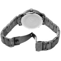 Black composite metal case with a black-plated stainless steel bracelet. Fixed black composite metal bezel. Blue dial with red hand. Arabic numeral hour markers. Dial Type: Analog. Date display above the 6 o'clock position. Quartz movement. Acrylic crystal. Pull / push crown. Solid case back. Round case shape. Case size: 40 mm. Case thickness: 13 mm. Band width: 18 mm. Band length: 8.25 inches. Fold over clasp. Water resistant at 30 meters / 100 feet. Functions: date, hour, minute, second. Fashion watch style. Watch label: Japan Movt. Joshua and Sons Date Blue Dial Men's Watch JX153SS. INFORMATION Brand: Joshua And Sons Gender: Mens Model: JX153SS Watch Label: Japan Movt Movement: Quartz CASE Case Size: 40 mm Case Thickness: 13 mm Case Material: Composite Metal Case Shape: Round Case Back: Solid BAND Band Material: Stainless Steel Band Type: Bracelet Band Color: Black-plated Band Length: 8.25 inches Band Width: 18 mm Clasp: Fold Over DIAL Dial Color: Blue Type: Analog Crystal: Acrylic Hands: Red Dial Markers: Arabic Numeral Bezel: Fixed Bezel Color: Black Bezel Material: Composite Metal Crown: Pull / Push FEATURES Water Resistance: 30 meters / 100 feet Calendar: Date display above the 6 o'clock position Functions: Date, Hour, Minute, Second Watch Features: Stainless Steel, Analog ADDITIONAL INFO Watch Style: Fashion Warranty: With Manufacturers Guarantee UPC Code: 842106145335 Jomashop Sku: JOJX153SS Department: Watches Category: Watches