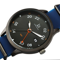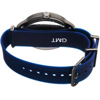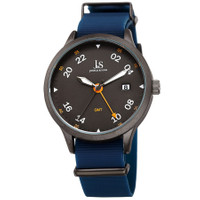 Black-plated composite metal case with a blue silicone strap. Fixed black-plated composite metal bezel. Grey dial with black hands and Arabic numeral (24 hour GMT scale) hour markers. Minute markers around the outer rim. Dial Type: Analog. Luminescent hands. Date display at the 3 o'clock position. Quartz movement. Scratch resistant mineral crystal. Pull / push crown. Solid case back. Round case shape. Case size: 40 mm. Case thickness: 9 mm. Band width: 18 mm. Band length: 7.5 inches. Tang clasp. Water resistant at 30 meters / 100 feet. Functions: date, GMT, hour, minute, second. Fashion watch style. Joshua and Sons GMT Grey Dial Men's Watch JX147GNBU. INFORMATION Brand: Joshua And Sons Gender: Mens Model: JX147GNBU Movement: Quartz CASE Case Size: 40 mm Case Thickness: 9 mm Case Material: Composite Metal Case Shape: Round Case Back: Solid BAND Band Material: Silicone Band Type: Strap Band Color: Blue Band Length: 7.5 inches Band Width: 18 mm Clasp: Tang DIAL Dial Color: Grey Type: Analog Crystal: Scratch Resistant Mineral Hands: Black Dial Markers: Arabic Numeral (GMT Scale) Second Markers: Minute Markers around the outer rim Luminiscence: Hands Bezel: Fixed Bezel Color: Black-plated Bezel Material: Composite Metal Crown: Pull / Push FEATURES Water Resistance: 30 meters / 100 feet Calendar: Date display at the 3 o'clock position Functions: Date, GMT, Hour, Minute, Second Watch Features: GMT, Analog ADDITIONAL INFO Watch Style: Fashion Warranty: With Manufacturers Guarantee UPC Code: 842106136425 Jomashop Sku: JOJX147GNBU Department: Watches Category: Watches