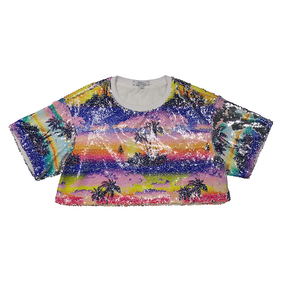Ksenia Schnaider Ladies Tops. SKU: KS1069SS19. Color: Multicolor. Ksenia Schnaider Hawaii Sequin Top. Hawaii sequin mixed colour top. Has silk-touch lining. Short Sleeve and elastic collar. This item has a relaxed fit. GENERAL Color: Multicolor INFORMATION Brand: Ksenia Schnaider Gender: Womens Model: KS1069SS19 DETAILS Category: Tops Apparel Type: Graphic Tees ADDITIONAL INFO Jomashop Sku: -KSENS-KS1069SS19 Department: Apparel