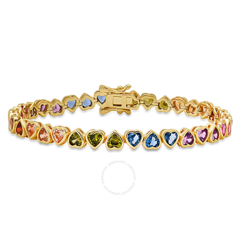 Bright and whimsical, this Yellow Gold Over Sterling Silver Bezel-Set Multi-Color Heart CZ Tennis Bracelet features vibrant heart-shaped Cubic Zirconia in sleek bezel settings, adding a cheerful and romantic flair to any outfit. Kylie Harper Ladies Bracelets. SKU: 36-002Y-DSB. Barcode: 810145655641. Color: Gold-tone. Metal Type: Gold Over Silver. Metal Stamp: 925-Sterling. Gem stone type: Cubic Zirconia. Bracelet style: Tennis. Closure type: Box. Kylie Harper 14k Gold Over Silver Bezel-set Multi Color Heart CZ Tennis Bracelet. GENERAL Box: No Papers: No Color: Gold-tone INFORMATION Brand: Kylie Harper Gender: Womens Model: 36-002Y-DSB DETAILS Size Info: 7.25 inches Bracelet Style : Tennis Closure Type: Box Material : Gold Over Silver Metal Stamp: 925-Sterling Stone Type: Cubic Zirconia ADDITIONAL INFO UPC Code: 810145655641 Jomashop Sku: Y-A57SM Department: Jewelry Category: Bracelets