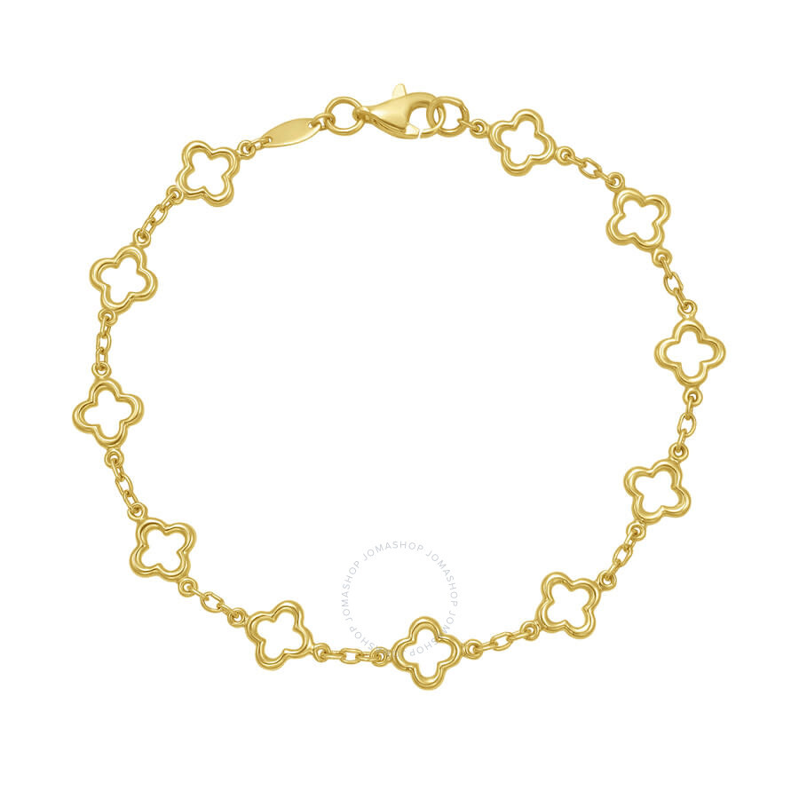 Delicate yet striking, this Ladies’ 14k Gold Fashion Clover Link Bracelet brings a fresh, feminine touch to your everyday jewelry collection. Crafted in 14k yellow gold, this bracelet features a series of elegant clover-shaped links, symbolizing luck, love, and timeless beauty.The openwork design creates a light, airy feel while still offering a luxurious golden glow. Whether worn solo for subtle sophistication or layered for a fashion-forward look, this bracelet adds charm and polish to any outfit. Finished with a secure lobster clasp for easy, worry-free wear. Kylie Harper Ladies Bracelets. SKU: 334-C19011-07. Barcode: 840505800213. Color: Gold-tone. Metal Type: Gold. Metal Stamp: 14k. Gem stone type: None. Bracelet style: Chain. Chain type: Link. Closure type: Lobster. Kylie Harper Ladies 14k Gold Fashion Clover Link Bracelet. GENERAL Box: No Papers: No Color: Gold-tone INFORMATION Brand: Kylie Harper Gender: Womens Model: 334-C19011-07 DETAILS Size Info: 7 inches Bracelet Style : Chain Chain Type: Link Closure Type: Lobster Material : Gold Metal Stamp: 14K ADDITIONAL INFO Additional Info: Stamped 14K UPC Code: 840505800213 Jomashop Sku: Y-A5DJZ Department: Jewelry Category: Bracelets