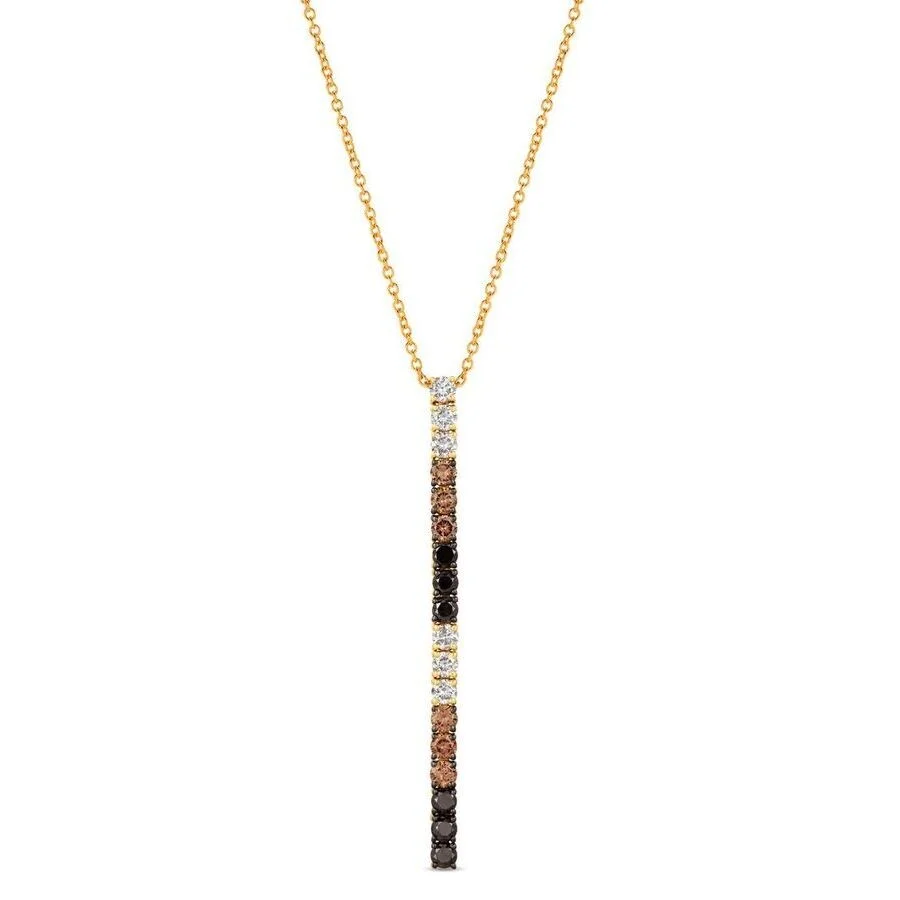 Le Vian Pendant featuring 3/8 cts. Blackberry Diamonds , 1/3 cts. Chocolate Diamonds , 1/3 cts. Nude Diamonds set in 14K Honey Gold Le Vian Ladies Necklaces. Chocolate Layer Cake series. SKU: DEKI 2059. Barcode: 191247645397. Color: Yellow. Metal Type: Gold. Metal Stamp: 14k. Metal Weight: 1.242g. Gem stone type: Diamond. Stone weight: 0.4ct. Number of stones: 18. Stone shape: Round. Stone color: Black. Necklace style: Pendant. Chain type: Cable. Closure type: Lobster. Le Vian Ladies Chocolate Layer Cake Necklaces set in 14K Honey Gold. GENERAL Stone Shape: Round Color: Yellow Collection Name: Chocolate Layer Cake INFORMATION Brand: Le Vian Series: Chocolate Layer Cake Gender: Womens Model: DEKI 2059 DETAILS Size Info: 18 inches Necklaces: Pendant Ring Style: Fashion Chain Type: Cable Closure Type: Lobster Material : Gold Metal Stamp: 14K Metal Weight: 1.242 Stone Type: Diamond Stone Weight: 0.4 Stone Color: Black Stone Cut: Round Stone Origin: Natural Total Stones: 18 ADDITIONAL INFO UPC Code: 191247645397 Jomashop Sku: Y-A5NRZ Department: Jewelry Category: Necklaces