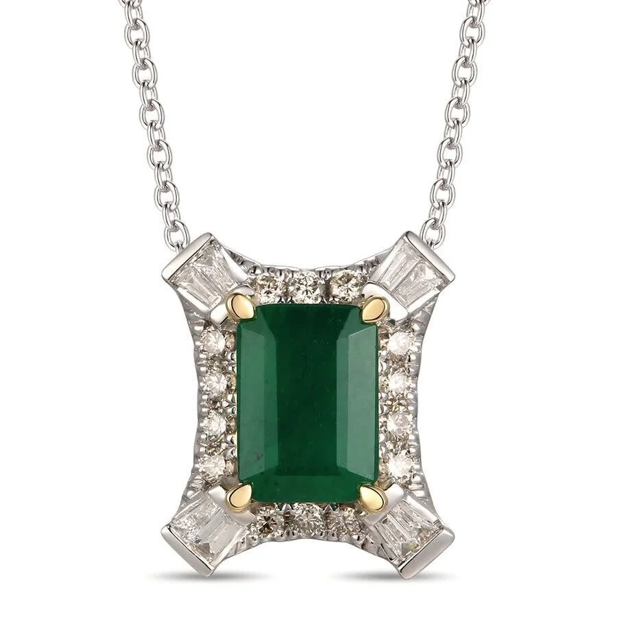 Le Vian Pendant featuring 3/4 cts. Costa Smeralda Emeralds, 1/5 cts. Nude Diamonds set in 14K Two Tone Gold Le Vian Ladies Necklaces. Costa Smeralda Emeralds series. SKU: TRPH 2C. Barcode: 191247603052. Color: Two-tone. Metal Type: Gold. Metal Stamp: 14k. Metal Weight: 1.62g. Gem stone type: Emerald. Stone weight: 0.7ct. Number of stones: 23. Stone shape: Emerald. Stone color: Green. Necklace style: Pendant. Chain type: Cable. Closure type: Lobster. Le Vian Ladies Costa Smeralda Emeralds Necklaces set in 14K Two Tone Gold. GENERAL Stone Shape: Emerald Color: Two-tone Collection Name: Costa Smeralda Emeralds INFORMATION Brand: Le Vian Series: Costa Smeralda Emeralds Gender: Womens Model: TRPH 2C DETAILS Size Info: 18 inches Necklaces: Pendant Ring Style: Fashion Chain Type: Cable Closure Type: Lobster Material : Gold Metal Stamp: 14K Metal Weight: 1.62 Stone Type: Emerald Stone Weight: 0.7 Stone Color: Green Stone Cut: Emerald Stone Origin: Natural Total Stones: 23 ADDITIONAL INFO UPC Code: 191247603052 Jomashop Sku: Y-A5LTD Department: Jewelry Category: Necklaces
