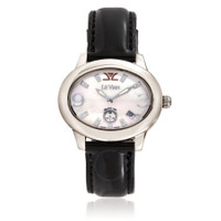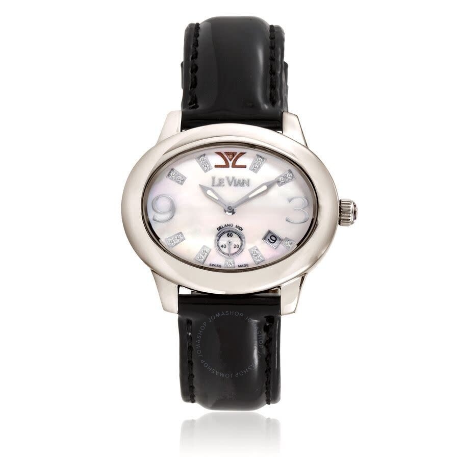 Silver-tone stainless steel case with a black leather strap. Fixed silver-tone stainless steel bezel. White dial with silver-tone hands and Arabic numeral & index hour markers. Dial Type: Analog. Luminescent hands. Date display between 4 and 5 o'clock position. Quartz movement. Round case shape, case size: 40 mm. Buckle clasp. Functions: date, hour, minute, second. Le Vian Time Series. Fashion watch style. Watch label: Swiss Made. Le Vian Le Vian Time Quartz White Dial Men's Watch LVL500MSSMP. CASE Case Size: 40 Case Material: Stainless Steel Case Shape: Round BAND Band Material: Leather Band Type: Strap Band Color: Black Clasp: Buckle DIAL Dial Color: White Type: Analog Hands: Silver-tone Dial Markers: Arabic Numeral & Index Luminiscence: Hands Bezel: Fixed Bezel Color: Silver-tone Bezel Material: Stainless Steel INFORMATION Brand: Le Vian Series: Le Vian Time Collection Name: Le Vian Time Gender: Mens Model: LVL500MSSMP Watch Label: Swiss Made Movement: Quartz FEATURES Calendar: Date display between 4 and 5 o'clock position Functions: Date, Hour, Minute, Second Watch Features: Stainless Steel, Leather, Analog ADDITIONAL INFO Watch Style: Fashion UPC Code: 667983945416 Jomashop Sku: Y-A2XVB Department: Watches Category: Watches