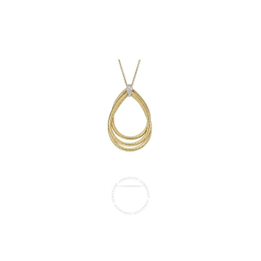 18K-Yellow-Gold- pendant with brilliant cut diamonds. Distinctive and luxurious, the signature texture of this Cairo Diamond Necklace is the result of fine gold thread meticulously wrapped around a woven gold core. Pendant length: 1.73". Total diamond weight: 0.09. GENERAL Color: Yellow INFORMATION Brand: Marco Bicego Gender: Womens Model: CG707 B YW M5 DETAILS Necklaces: 1 Band Material : Yellow Gold Metal Stamp: 18K Stone Type: Diamond Stone Origin: Natural ADDITIONAL INFO Jomashop Sku: Y-A48YU Department: Jewelry Category: Necklaces Choose a Size: 16 Inches