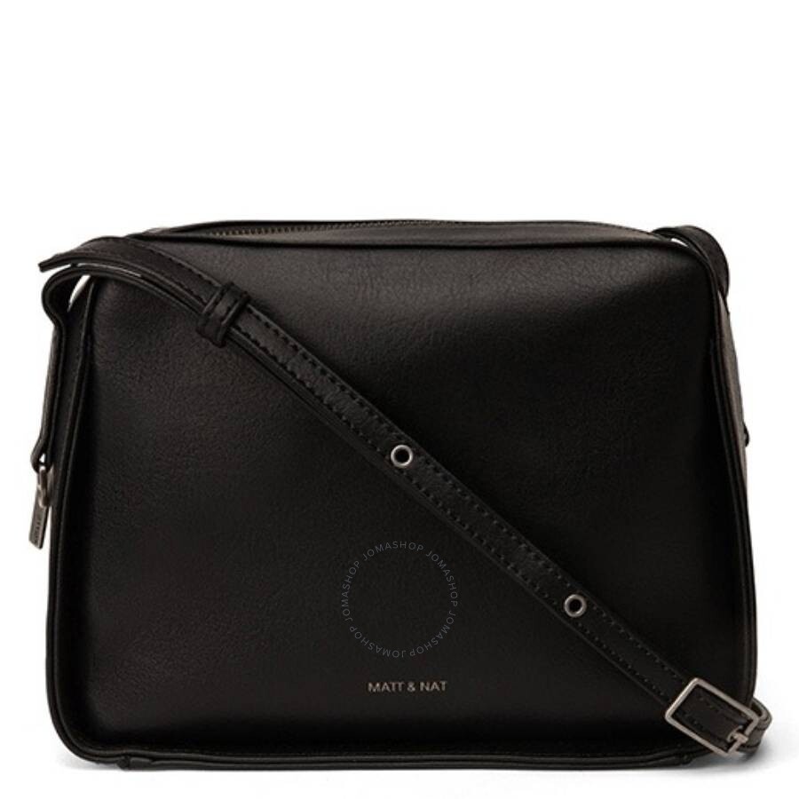 Matt & Nat Ladies Crossbody. SKU: ARCBLACK. Color: Black. Size: 9.5”L x 7.25”H x 3.5”D. Matt Nat Arbor Arc Vegan Crossbody Bag. This crossbody bag features an adjustable shoulder strap (20"–24.5"), a zippered main compartment, and ring hardware detail at the bottom left strap, with an interior zipper pocket and a logo-embossed Arbor patch—all crafted from recycled materials as part of the eco-conscious Arbor collection. GENERAL Size Info: 9.5”L x 7.25”H x 3.5”D Color: Black INFORMATION Brand: Matt & Nat Gender: Womens Model: ARCBLACK DETAILS Closure: Zip-Up ADDITIONAL INFO UPC Code: 883313083010 Jomashop Sku: Z-4YG4S Department: Bags Category: Crossbody