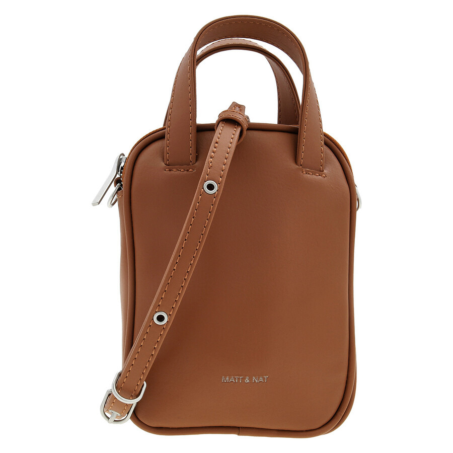 Matt & Nat Ladies Crossbody. SKU: LEAPPECAN. Color: Pecan. Size: 5.75”L x 7.75”H x 1.5”D. Matt Nat Pecan Arbor Leap Vegan Crossbody Bag. This crossbody bag, featuring handles for hand-carrying, a zippered main compartment, and a detachable, adjustable strap (20"–24.5"), is designed to fit a large smartphone, a slim cardholder, and other small essentials; it also includes an interior zipper pocket with a logo-embossed Arbor patch, and both the outer body and lining are made from recycled materials. GENERAL Size Info: 5.75”L x 7.75”H x 1.5”D Color: Pecan INFORMATION Brand: Matt & Nat Gender: Womens Model: LEAPPECAN DETAILS Occasion: Casual Closure: Zip-Up DIMENSIONS Size: Mini ADDITIONAL INFO UPC Code: 883313083430 Jomashop Sku: Z-3DZV2 Department: Bags Category: Crossbody