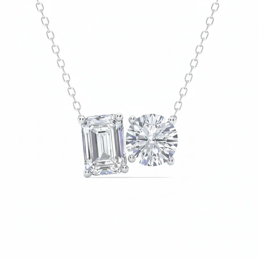 Celebrate everlasting connection with the Mauli Jewels 2.00 Carat Lab Grown Diamond Toi Et Moi Pendant Necklace, an elegant symbol of unity and modern romance. Designed in luminous 14K white gold and yellow gold this pendant features two stunning lab grown diamonds—one 7x5mm emerald cut (1.00 Ct) and one 6.5mm round cut (1.00 Ct)—totaling 2.00 carats of brilliance. Each diamond showcases exceptional sparkle and EF-VS1 clarity, reflecting sophistication and timeless charm. The Toi Et Moi (You and Me) design beautifully merges two unique shapes, symbolizing harmony and balance in relationships. Suspended from a gold cable chain, this necklace exudes versatility and grace, perfect for both everyday elegance and special occasions. Thoughtfully designed, it’s a meaningful piece that captures love, light, and individuality. GENERAL Stone Shape: Emerald Color: White Collection Name: Lb-Grown Diamond Necklace INFORMATION Brand: Maulijewels Series: Lb-Grown Diamond Necklace Gender: Womens Model: 7565EMRDWLB DETAILS Size Info: 18 inches Necklaces: Pendant Ring Style: Fashion Chain Type: Cable Closure Type: Spring Ring Material : White Gold Metal Stamp: 14K Metal Weight: 2.85 Stone Type: Diamond Stone Weight: 1 Stone Color: E-F Stone Cut: Emerald Stone Clarity: VS1 Stone Origin: Lab Grown Total Stones: 2 ADDITIONAL INFO Jomashop Sku: Y-A5Q4N Department: Jewelry Category: Necklaces