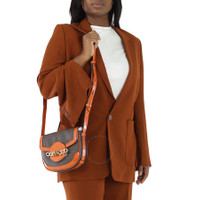 Michael Kors Ladies Crossbody. SKU: 30F1G2HM2E. Barcode: 194900725962. Color: Orange. Michael Kors Hally Signature Logo-print Saddle Crossbody Bag. A Michael Kors shoulder bag crafted in signature print leather with a gold-tone hardware 100% leather trim and 100% polyester lining. It features a snap fastening, exterior back slip pocket and one main interior compartment. GENERAL Color: Orange INFORMATION Brand: Michael Kors Gender: Womens Model: 30F1G2HM2E DIMENSIONS Size: Medium ADDITIONAL INFO UPC Code: 194900725962 Jomashop Sku: Z-LULDM Department: Bags Category: Crossbody