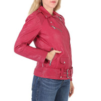 Michael Kors Ladies Outerwear. Fashion category: Coats & Jackets. SKU: MU92J0K2A3-505. Color: Berry. Michael Kors Ladies Crinkled Leather Moto Jacket. This jacket from Michael Kors features a front zip closure, side zip pckets, a belted waist, long sleeves, a spread collar, epaulettes on shoulders and a zip pocket on the chest. Materials - 100% Lamb Leather, Lining: 97% Polyester/3% Elastane. GENERAL Upper Material: Leather Color: Berry INFORMATION Brand: Michael Kors Gender: Womens Model: MU92J0K2A3-505 DETAILS Category: Outerwear Apparel Type: Coats & Jackets ADDITIONAL INFO Jomashop Sku: -MU92J0K2A3505 Department: Apparel