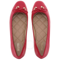 Michael Kors Ladies Flats. SKU: 40F3NRFP1L-602. Color: Red. Michael Kors Nori Leather Ballet Flats. The Nori ballet flat is an elegant, slip-on shoe crafted from ultra-smooth, 100% leather with a polyurethane blend lining, featuring a bow at the almond toe accented with minimal hardware, and a rubber sole. 100% Leather. Please visit the brand website for sizing information. INFORMATION Brand: Michael Kors Model: 40F3NRFP1L-602 Gender: Womens DETAILS Category: Flats Shoe Style: Ballet Shoe Style: Ballet Color: Red Shoe Vamp Style: Slip-on Upper Material: Leather ADDITIONAL INFO Jomashop Sku: -40F3NRFP1L602 Department: Shoes