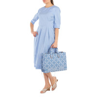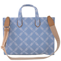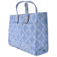 Michael Kors Ladies Tote. SKU: 30R4G3GT3U465. Color: Blue. Size: 15.5"W x 11.75"H x 5.25"D. Michael Kors Monogram-Jacquard Denim Tote Bag. This tote features an allover logo chain jacquard pattern with Empire logo jacquard detailing. It has a rectangular shape and a handle drop of 4.5 inches. The exterior includes a front slip pocket, while the interior boasts a back zip pocket and two front slip pockets. Silver-tone hardware complements the design. 53.2% Cotton/46.8% Polyester. GENERAL Size Info: 15.5"W x 11.75"H x 5.25"D Brand Type: Designer Color: Blue INFORMATION Brand: Michael Kors Gender: Womens Model: 30R4G3GT3U465 DETAILS Material: Cotton, Polyester ADDITIONAL INFO UPC Code: 196237507204 Jomashop Sku: Z-VRB38 Department: Bags Category: Tote Bags
