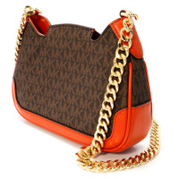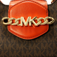 Michael Kors Ladies Crossbody. SKU: 32F1G2HC0B. Barcode: 194900740071. Color: Orange. Michael Kors Orange Ladies Hally Extra Small Presbyopia Leather Crossbody Bag. Crafted in monogramed canvas and accented with leather, this bag features a small foldover top with magnetic fastening, main compartment with a slip pocket, single shoulder strap and finished with a chain and MK letter plaque on the front. GENERAL Color: Orange INFORMATION Brand: Michael Kors Gender: Womens Model: 32F1G2HC0B DIMENSIONS Size: Small ADDITIONAL INFO UPC Code: 194900740071 Jomashop Sku: Z-KQQDZ Department: Bags Category: Crossbody