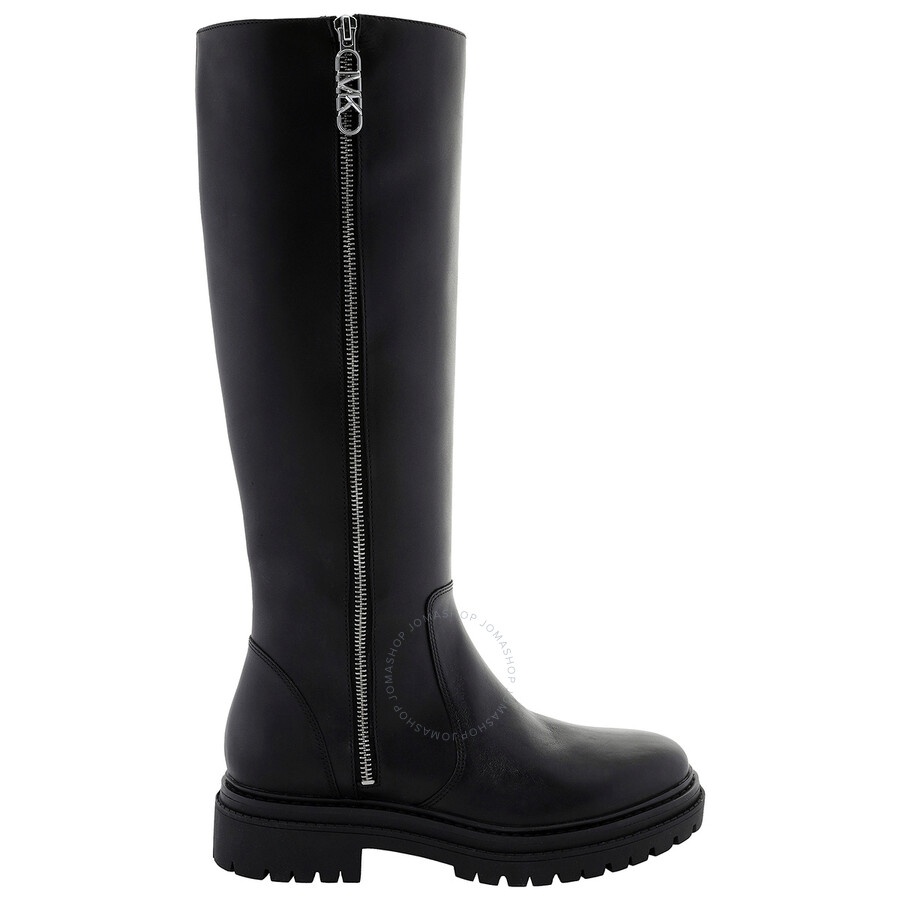 Michael Kors Ladies Boots. SKU: 40F3RGFB5L-001. Color: Black. Michael Kors Regan Leather Knee-High Boots. The Regan boots feature a knee-high design with thick rubber tread soles for durability in inclement weather, a zip closure for a snug fit, a 1.75" heel height, a 1" platform, and a rubber heel. 100% leather. Lining: polyester. Sole: rubber. Please visit the brand website for sizing information. INFORMATION Brand: Michael Kors Model: 40F3RGFB5L-001 Gender: Womens DETAILS Category: Boots Shoe Style: Knee-High Boots Shoe Style: Knee-High Boots Color: Black Shoe Vamp Style: Slip-on Upper Material: Leather Sole Material: Rubber ADDITIONAL INFO Jomashop Sku: -40F3RGFB5L001 Department: Shoes
