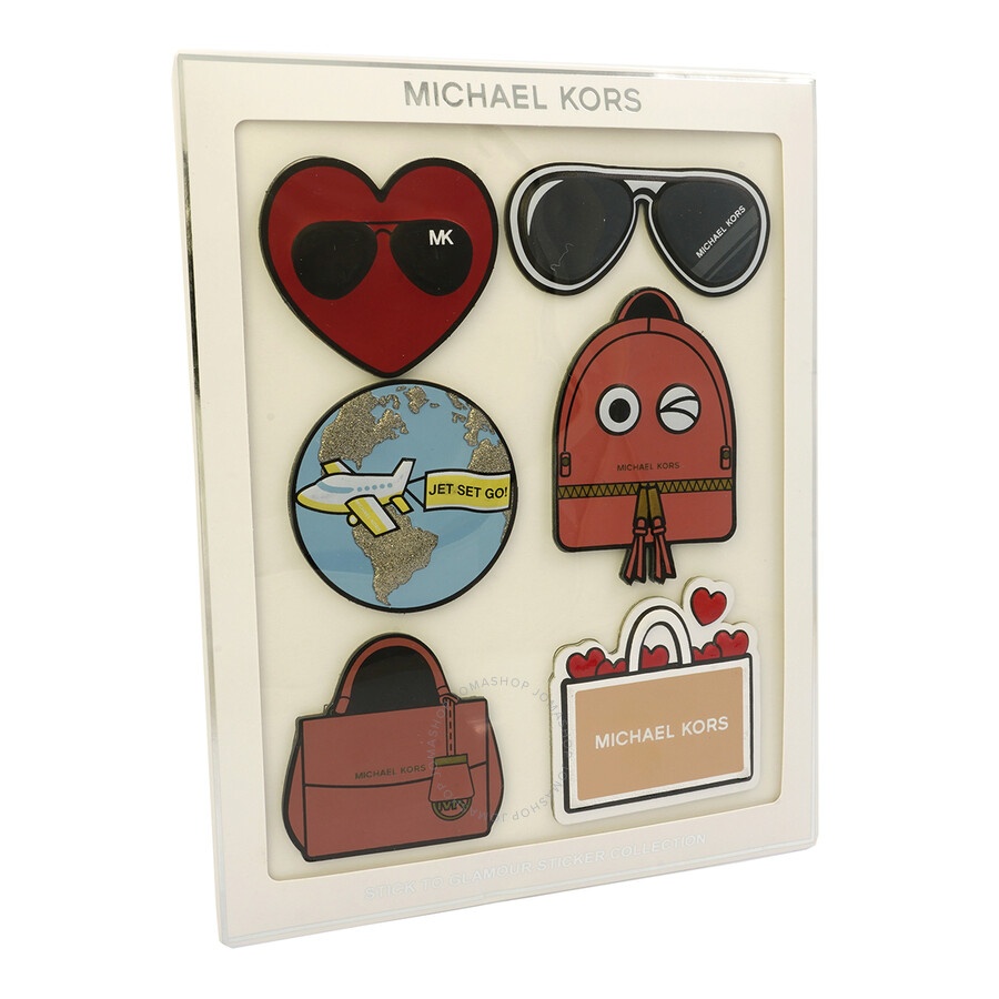 Michael Kors Ladies Stickers. Misc. series. SKU: 32F6MH7N7L-000. Barcode: 190049707227. Color: Undefined Color. Michael Kors Stick To Glamour Sticker Set. Stick to Glamour sticker set includes: 1 globe, 1 heart, 1 handbag, 1 backpack, 1 shopping bag, and 1 sunglasses. Dimensions range from 2" to 2-1/2" GENERAL Color: Multicolor Collection Name: Misc. INFORMATION Brand: Michael Kors Series: Misc. Gender: Womens Model: 32F6MH7N7L-000 ADDITIONAL INFO UPC Code: 190049707227 Jomashop Sku: Z-YYWJL Department: Accessories Category: Stickers