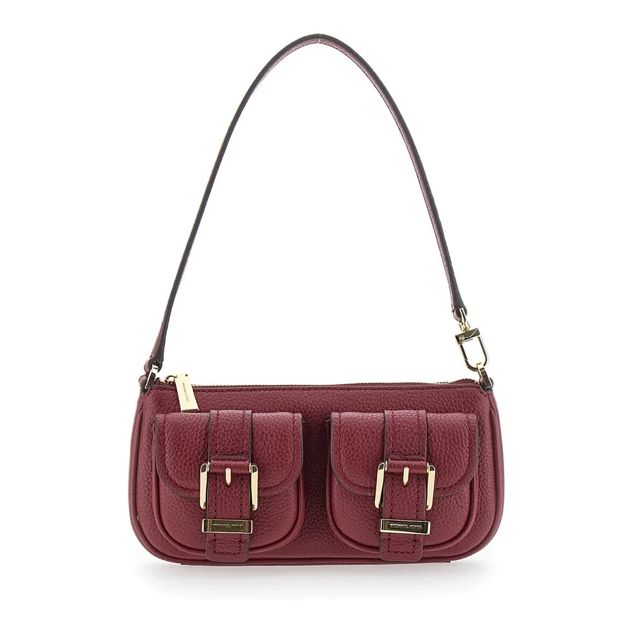 Michael Kors Zoe Bordeaux Shoulder Bag With Two Patch Pockets On The Front In Grained Leather