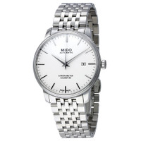 Stainless steel case with a stainless steel bracelet. Fixed stainless steel bezel. White dial with silver-tone dauphine-style hands and index hour markers. Minute markers around the outer rim. Dial Type: Analog. Date display at the 3 o'clock position. Mido calibre Powermatic 80 (ETA C07.621) automatic movement, based upon ETA 2824-2, containing 23 Jewels, bitting at 21600 vph, and has a power reserve of approximately 80 hours. Scratch resistant sapphire crystal. Pull / push crown. Transparent case back. Round case shape. Case size: 40 mm. Case thickness: 9.43 mm. Band width: 20 mm. Fold over clasp with a push button release. Water resistant at 30 meters / 100 feet. Functions: date, hour, minute, second. Baroncelli iii series. Casual watch style. Watch label: Swiss Made. Mido Baroncelli III Automatic Men's Watch M027.408.11.011.00. INFORMATION Brand: Mido Series: Baroncelli Iii Collection Name: Baroncelli III Gender: Mens Model: M0274081101100 Watch Label: Swiss Made Movement: Automatic Engine: Mido Calibre Powermatic 80 (ETA C07.621) Power Reserve: 80 hours CASE Case Size: 40 mm Case Thickness: 9.43 mm Case Material: Stainless Steel Case Shape: Round Case Back: Transparent BAND Band Material: Stainless Steel Band Type: Bracelet Band Color: Silver-tone Band Width: 20 mm Clasp: Fold Over with Push Button Release DIAL Dial Color: White Type: Analog Crystal: Scratch Resistant Sapphire Hands: Silver-tone Dauphine-style Dial Markers: Index Second Markers: Minute Markers around the outer rim Bezel: Fixed Bezel Color: Silver-tone Bezel Material: Stainless Steel Crown: Pull / Push FEATURES Water Resistance: 30 meters / 100 feet Calendar: Date display at the 3 o'clock position Functions: Date, Hour, Minute, Second Watch Features: Stainless Steel, Analog ADDITIONAL INFO Watch Style: Casual Warranty: 2 Year Jomashop Warranty UPC Code: 7612330132875 Jomashop Sku: MIDO-M0274081101100 Department: Watches Category: Watches