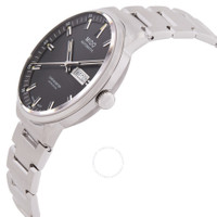 Silver-tone stainless steel case and bracelet. Fixed silver-tone stainless steel bezel. Anthracite dial with silver-tone hands and index hour markers. Minute markers around the outer rim. Dial Type: Analog. Day of the week and date display at the 3 o'clock position. Quartz movement with an 80-hour power reserve. Scratch resistant sapphire crystal. Pull / push crown. Solid case back. Round case shape, case size: 40 mm, case thickness: 11.2 mm. Band width: 21 mm. Fold over clasp with a safety release. Water resistant at 50 meters / 165 feet. Functions: date, hour, minute, second. Commander Iba Series. Dress watch style. Watch label: Swiss Made. Mido Commander IBA Quartz Anthracite Dial Men's Watch M0214311106102. GENERAL Box Type: Original Box CASE Case Thickness: 11.2 mm Case Material: Stainless Steel Case Shape: Round Case Back: Solid BAND Band Material: Stainless Steel Band Type: Bracelet Band Color: Silver-tone Band Width: 21 mm Clasp: Fold Over with Safety Release DIAL Dial Color: Anthracite Type: Analog Crystal: Scratch Resistant Sapphire Hands: Silver-tone Dial Markers: Index Second Markers: Minute Markers around the outer rim Bezel: Fixed Bezel Color: Silver-tone Bezel Material: Stainless Steel Crown: Pull / Push INFORMATION Brand: Mido Series: Commander Iba Collection Name: Commander IBA Gender: Mens Model: M0214311106102 Watch Label: Swiss Made Movement: Quartz Power Reserve: 80 hours FEATURES Water Resistance: 50 meters / 165 feet Calendar: Day of the Week and Date display at the 3 o'clock position Functions: Date, Hour, Minute, Second Watch Features: Stainless Steel, Analog ADDITIONAL INFO Watch Style: Dress Warranty: 2 Year Jomashop Warranty Jomashop Sku: MIDO-M0214311106102 Department: Watches