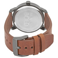 Black ion-plated stainless steel case with a cognac leather strap. Fixed black ion-plated bezel. Black dial with metallic brown hands and index hour markers. Minute markers around the outer rim. The Movado dot appears at the 12 o'clock position. Dial Type: Analog. Quartz movement. Scratch resistant K1 mineral crystal. Pull / push crown. Solid case back. Round case shape. Case size: 41 mm. Band width: 20 mm. Tang clasp. Water resistant at 50 meters / 165 feet. Functions: hour, minute, second. Casual watch style. Movado Bold Black Dial Men's Watch 3600489. GENERAL Box Type: Original Box CASE Case Diameter: 41 mm Case Material: Stainless Steel Case Shape: Round Case Back: Solid BAND Band Material: Leather Band Type: Strap Band Color: Cognac Band Width: 20 mm Clasp: Tang DIAL Dial Color: Black Type: Analog Crystal: Scratch Resistant K1 Mineral Hands: Metallic Brown Dial Markers: Index Second Markers: Minute Markers around the outer rim. Movado Dot appears at the 12 o'clock position Bezel: Fixed Bezel Color: Black Ion-plated Bezel Material: Stainless Steel Crown: Pull / Push INFORMATION Brand: Movado Series: Bold Collection Name: Bold Gender: Mens Model: 3600489 Movement: Quartz FEATURES Water Resistance: 50 meters / 165 feet Functions: Hour, Minute, Second Watch Features: Analog, Leather, Stainless Steel ADDITIONAL INFO Watch Style: Casual Warranty: 2 Year Jomashop Warranty Jomashop Sku: MV3600489 Department: Watches Category: Watches