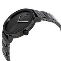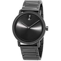 Gunmetal ion-plated stainless steel case with a gunmetal ion-plated stainless steel bracelet. Fixed gunmetal ion-plated stainless steel bezel. Gunmetal dial with black hands. No markers. The Movado dot appears at the 12 o'clock position. Dial Type: Analog. Quartz movement. Scratch resistant mineral K1 crystal. Pull / push crown. Solid case back. Round case shape. Case size: 40 mm. Bracelet width: 21 mm. Deployment clasp. Water resistant at 30 meters / 100 feet. Functions: hour, minute. Casual watch style. Watch label: Swiss Movt. Movado Bold Gunmetal Dial Gunmetal Ion-plated Men's Watch 3600509 GENERAL Box Type: Original Box CASE Case Material: Stainless Steel Case Shape: Round Case Back: Solid BAND Band Material: Stainless Steel Band Type: Bracelet Band Color: Gunmetal Ion-plated Band Width: 21 mm Clasp: Deployment DIAL Dial Color: Gunmetal Type: Analog Crystal: Scratch Resistant K1 Mineral Hands: Black Second Markers: No Markers. Movado Dot appears at the 12 o'clock position Bezel: Fixed Bezel Color: Gunmetal Ion-plated Bezel Material: Stainless Steel Crown: Pull / Push INFORMATION Brand: Movado Series: Bold Collection Name: Bold Gender: Mens Model: 3600509 Watch Label: Swiss Movt Movement: Quartz FEATURES Water Resistance: 30 meters / 100 feet Functions: Hour, Minute Watch Features: Analog, Stainless Steel ADDITIONAL INFO Watch Style: Casual Warranty: 2 Year Jomashop Warranty Jomashop Sku: MV3600509 Department: Watches Category: Watches