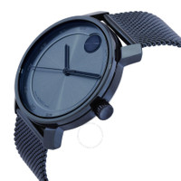 Blue PVD stainless steel case with a blue PVD stainless steel mesh bracelet. Fixed blue PVD stainless steel bezel. Grey dial with Arabic numeral hour markers. Dial Type: Analog. Quartz movement. Scratch resistant mineral crystal. Pull / push crown. Solid case back. Round case shape, case size: 41 mm. Fold over clasp. Water resistant at 30 meters / 100 feet. Functions: hour, minute, second. Bold Series. Casual watch style. Watch label: Swiss Made. Movado Bold Quartz Blue Dial Men's Watch 3600959. CASE Case Size: 41 Case Material: Stainless Steel Case Shape: Round Case Back: Solid BAND Band Material: Stainless Steel Mesh Band Type: Bracelet Band Color: Blue PVD Clasp: Fold Over DIAL Dial Color: Grey Type: Analog Crystal: Mineral Dial Markers: Arabic Numeral Bezel: Fixed Bezel Color: Blue PVD Bezel Material: Stainless Steel Crown: Pull / Push INFORMATION Brand: Movado Series: Bold Collection Name: Bold Gender: Mens Model: 3600959 Watch Label: Swiss Made Movement: Quartz FEATURES Water Resistance: 30 meters / 100 feet Functions: Hour, Minute, Second Watch Features: Stainless Steel, Analog ADDITIONAL INFO Watch Style: Casual Warranty: 2 Year Jomashop Warranty Jomashop Sku: MV3600959 Department: Watches Category: Watches