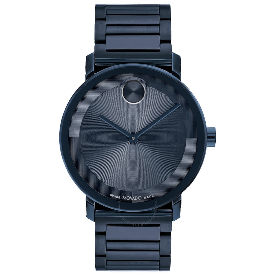 Blue stainless steel case and bracelet. Fixed blue stainless steel bezel. Blue dial with blue hands. Dial Type: Analog. Quartz movement. Scratch resistant mineral crystal. Round case shape, case size: 40 mm. Band width: 20 mm. Fold over clasp with a safety release. Water resistant at 30 meters / 100 feet. Functions: hour, minute. Bold Series. Fashion watch style. Movado Bold Quartz Blue Dial Men's Watch 3601097. GENERAL Box Type: Original Box CASE Case Diameter: 40 mm Case Material: Stainless Steel Case Shape: Round BAND Band Material: Stainless Steel Band Type: Bracelet Band Color: Blue Band Width: 20 mm Clasp: Fold Over with Safety Release DIAL Dial Color: Blue Type: Analog Crystal: Scratch Resistant Mineral Hands: Blue Bezel: Fixed Bezel Color: Blue Bezel Material: Stainless Steel INFORMATION Brand: Movado Series: Bold Collection Name: Bold Gender: Mens Model: 3601097 Movement: Quartz FEATURES Water Resistance: 30 meters / 100 feet Functions: Hour, Minute Watch Features: Stainless Steel, Analog ADDITIONAL INFO Watch Style: Fashion Warranty: 2 Year Jomashop Warranty UPC Code: 885997484077 Jomashop Sku: MV3601097 Department: Watches