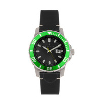Band Color: Black Genuine Leather; Band Width: 22mm near case; 20mm near clasp/buckle; Bezel Color: Green; Case: Silver + Circle-Shaped; Case Finish: Brushed + Stainless Steel; Case Thickness: 14mm; Case Width: 45mm; 51mm with Crown; Clasp / Buckle: Strap Buckle; Dial: Black + Analog; Hand Color: Silver; Movement: Japanese + Quartz; Time Zones: Single; Water Resistance: 20 ATM. Silver-tone stainless steel case with a black genuine leather strap. Uni-directional rotating green stainless steel bezel. Black dial with silver-tone hands and index hour markers. Minute markers around the outer rim. Dial Type: Analog. Luminescent hands and markers. Date display at the 3 o'clock position. Quartz movement. Scratch resistant mineral crystal. Pull / push crown. Solid case back. Round case shape, case size: 45 mm, case thickness: 14 mm. Band width: 22 mm, band length: 9 inches. Buckle clasp. Water resistant at 200 meters / 660 feet. Functions: date, hour, minute, second. Dive Pro 200 Series. Casual watch style. Watch label: Japan Movt. Nautis Dive Pro 200 Quartz Black Dial Men's Watch GL1909-G. GENERAL Box Type: Original Box CASE Case Size: 45 Case Thickness: 14 mm Case Material: Stainless Steel Case Shape: Round Case Back: Solid BAND Band Material: Genuine Leather Band Type: Strap Band Color: Black Band Length: 9 inches Band Width: 22 mm Clasp: Buckle DIAL Dial Color: Black Type: Analog Crystal: Scratch Resistant Mineral Hands: Silver-tone Dial Markers: Index Second Markers: Minute Markers around the outer rim Luminiscence: Hands and Markers Bezel: Uni-directional Rotating Bezel Color: Green Bezel Material: Stainless Steel Crown: Pull / Push INFORMATION Brand: Nautis Series: Dive Pro 200 Collection Name: Dive Pro 200 Gender: Mens Model: GL1909-G Watch Label: Japan Movt Movement: Quartz FEATURES Water Resistance: 200 meters / 660 feet Calendar: Date display at the 3 o'clock position Functions: Date, Hour, Minute, Second Watch Features: Analog, Leather, Stainless Steel, Time Zone ADDITIONAL INFO Watch Style: Casual Warranty: With Manufacturers Guarantee UPC Code: 847864199798 Jomashop Sku: Y-150878 Department: Watches Category: Watches